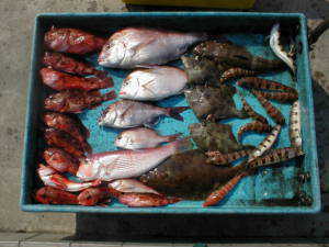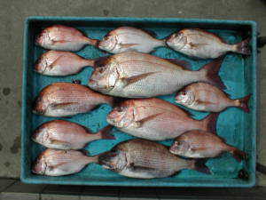 タイ 7枚 3.4キロ 1.8キロ 0.5〜1.5キロ ホウボウ サバ 鬼カサゴ 1キロ級 2尾 |