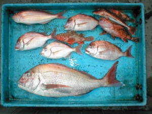 タイ 3枚 最後の一流しで 4.0キロ 1.7キロ アマダイ 1.0キロ 鬼カサゴ |