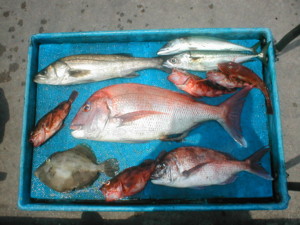 | 08/06/18 | タイ 2枚 松戸市 米沢氏 マダイ 3.5キロ カサゴ ホウボウ カワハギ フッコ |
